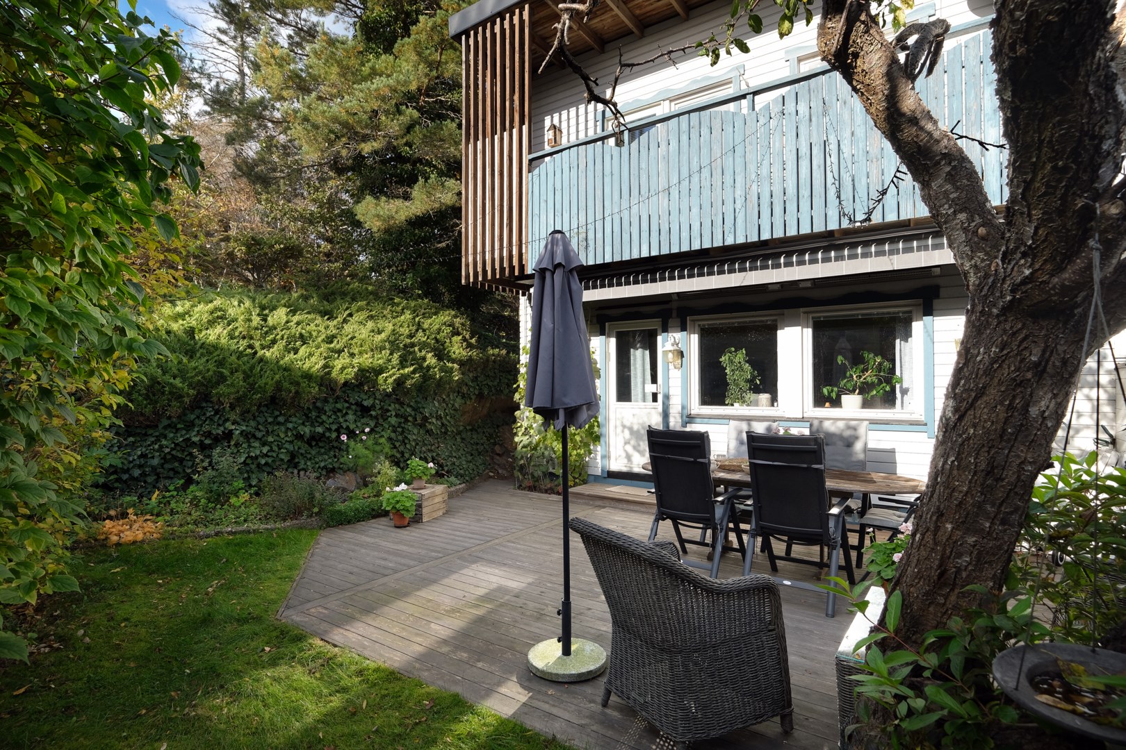 Välkommen till detta mycket trevliga gavelradhus av den sällsynta stora modellen på totalt 174 kvm (ett av endast 11 i området)! Totalt 6 rum varav 3-5 sovrum, 3 allrum, totalrenoverat kök och tvättrum 2016, helkaklat duschrum 2018 samt ytterligare ett helkaklat duschrum 2015 med stor bastu. Det