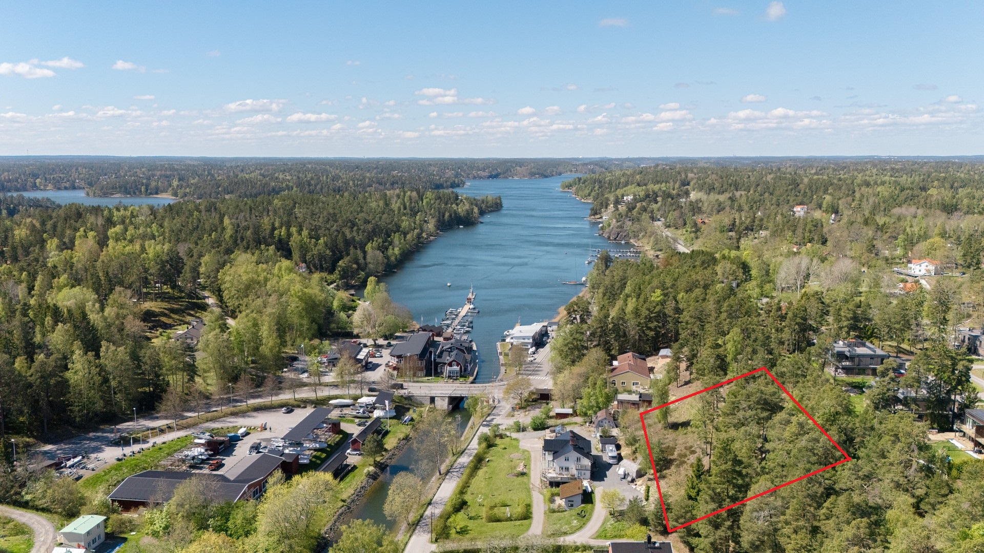 I bästa söderläge och med utsikt ner Strömma Kanal finner ni denna högt belägna sluttningstomt om 2.837 kvadratmeter redo att bebyggas. Tomten har en generös byggrätt där byggnad får uppföras i två våningsplan om 250 kvm BYA (den yta som en byggnad upptar på marken) och 350 kvm BTA (den totala