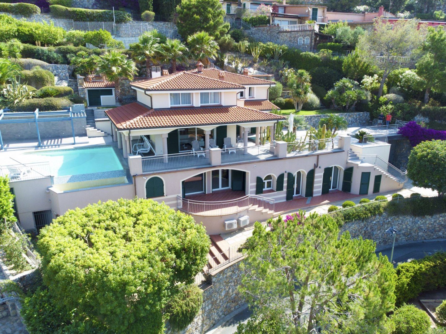 Lyxvilla med pool till salu i Pinamare. Andora, belägen i ett av de vackraste områdena i västra Ligurien. Belägen i den eleganta omgivningen i Pinamare, en underbar lyxvilla till salu med fantastisk havsutsikt. Denna villa till salu i Andora är omgiven av en omsorgsfullt välskött trädgård, stora