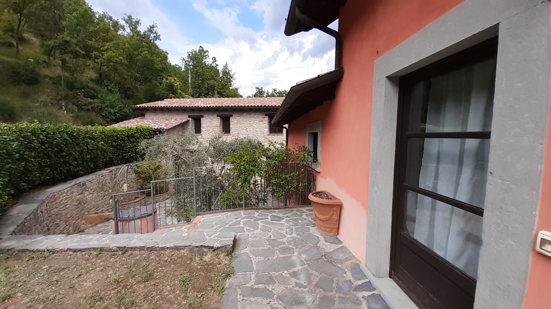 Rustikt toskanskt stenhus med gästhus till salu utanför Villafranca in Lunigiana i provinsen Lucca i efterfrågade regionen Toscana. Fastigheten ligger med ett privat läge utan några omedelbara grannar på en sluttning med fantastisk utsikt. Varje hus är restaurerad till en hög standard och båda
