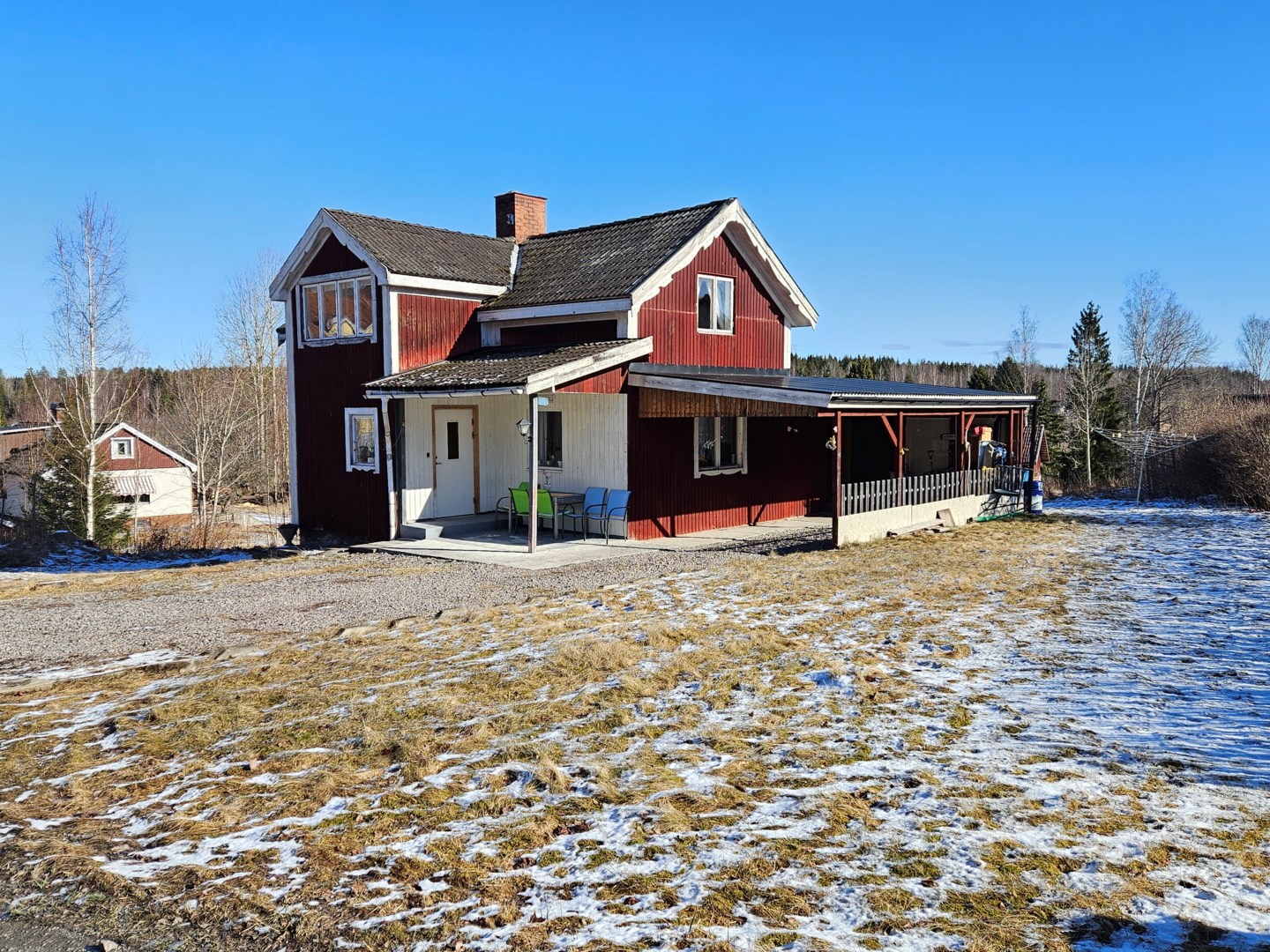 Mysigt bostadshus med tillhörande uthus och lillstuga/lekstuga. Möjligt att ha även som fritidshus! Huset inrymmer 3 rok, wc/dusch samt källare med tvättstuga/pannrum och wc/handfat. Intill köket finns en inglasad altan med utsikt över trädgården. Även en uteplats under tak i västerläge, vid huset