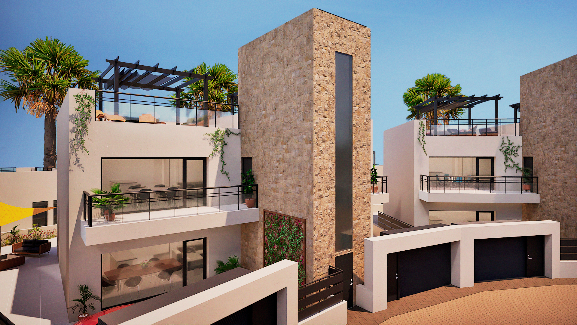 Nya moderna lägenheter i La Pinilla, Murcia, med stilren design och genomtänkt planlösning. Bostäderna erbjuder tre sovrum, två badrum samt öppna sociala ytor mellan kök och vardagsrum, vilket skapar ett ljust och trivsamt hem. Stora fönster ger ett generöst ljusinsläpp och skapar en naturlig