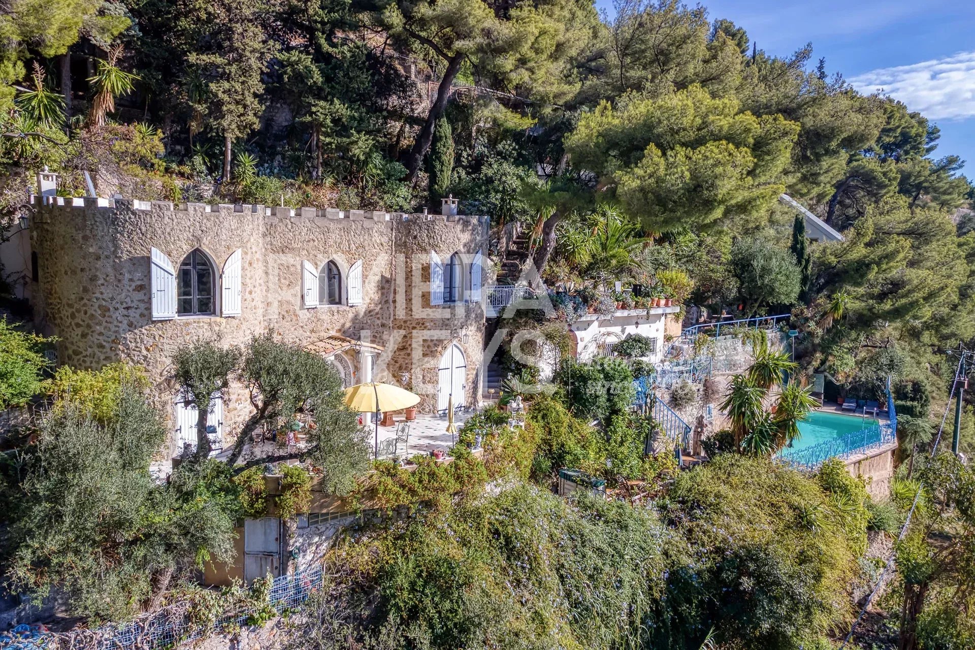 ROQUEBRUNE-CAP-MARTIN: Historisk bastide med pool och fantastisk utsikt Denna bastide med anor ligger på en tomt om över 1 500 m² och erbjuder en terrasserad trädgård samt flera soliga terrasser. Huvudhuset har på entréplanet ett generöst vardagsrum, kök och badrum. På övre plan finns 2