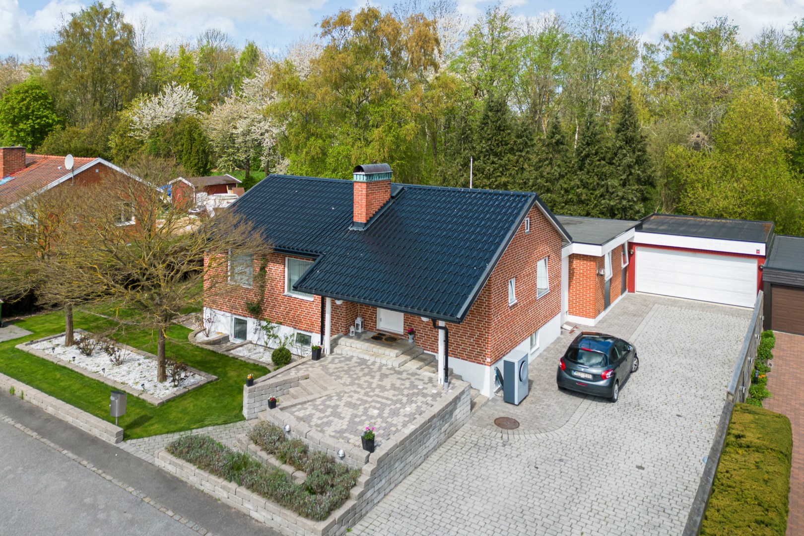 Friliggande 1-plansvilla på härligt läge. Huset är perfekt för den bilintresserade med stort garage uppvärmt via vattenburen golvvärme med plats för två bilar och stor stensatt uppfart med plats för flera bilar. Huset är välplanerat med en fin öppen planlösning mellan kök och vardagsrum.