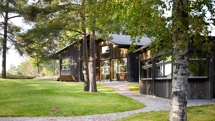 Detta kvadratsmarta och unika hus är ritat utav TEA, Thomas Eriksson Arkitekter. Här erbjuds en perfekt kombination av lyx och funktion. Huset har ett privat läge längst in på en återvändsväg och ligger insynsskyddat mot sin omgivning vilket ger en känsla av avskildhet och ro. Här kan man följa