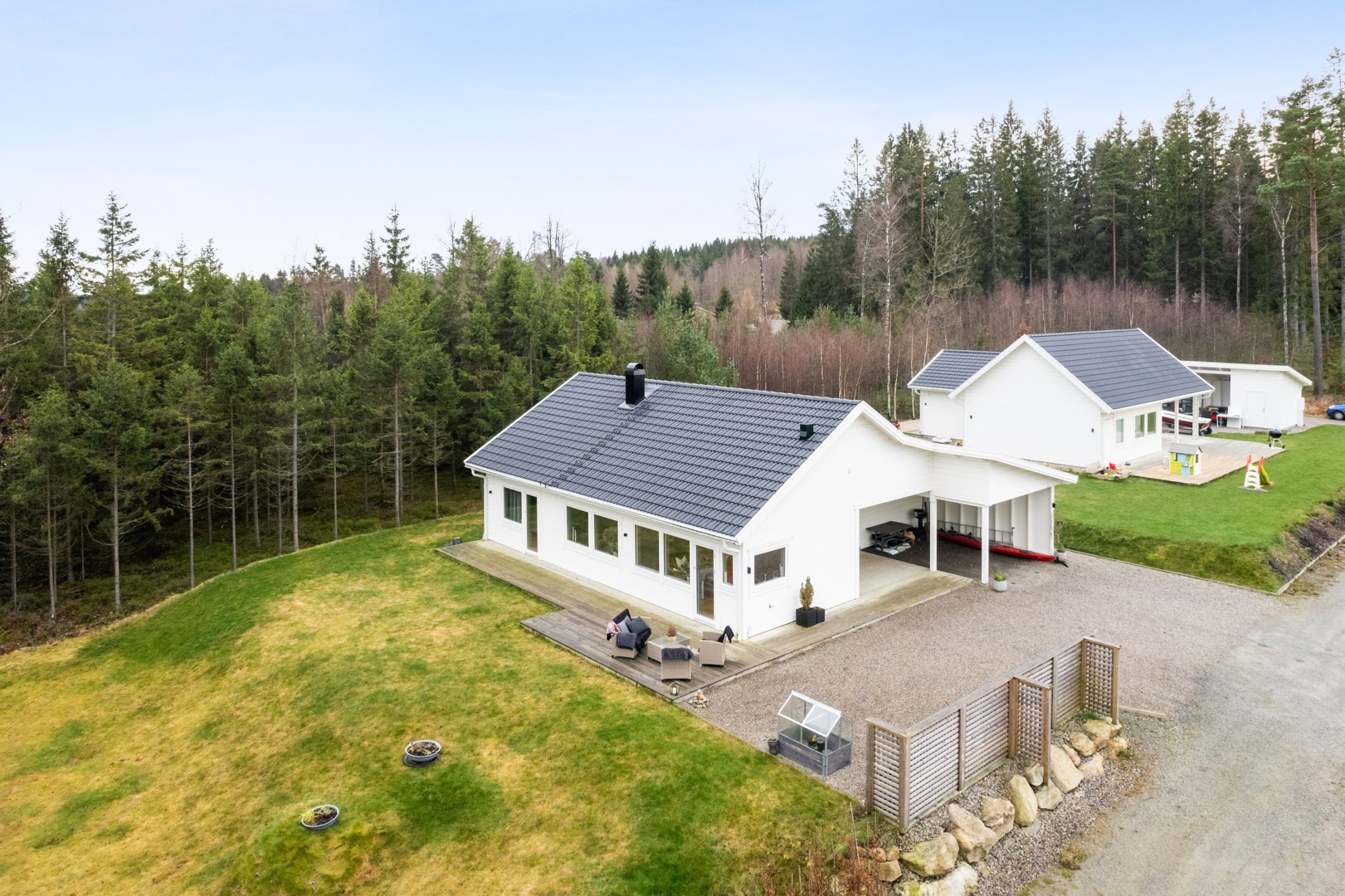 Ljus & öppen planlösning Kvalitativ interiör Inredningsbar vindsvåning Bra förvaringsutrymmen Stor altan med många soltimmar Vacker rogivande utsikt Trädgård som övergår till skog Carport & uppfart för flera fordon Fri från fastighetsskatt till 2034 Robotgräsklippare med slingor Pallkragar