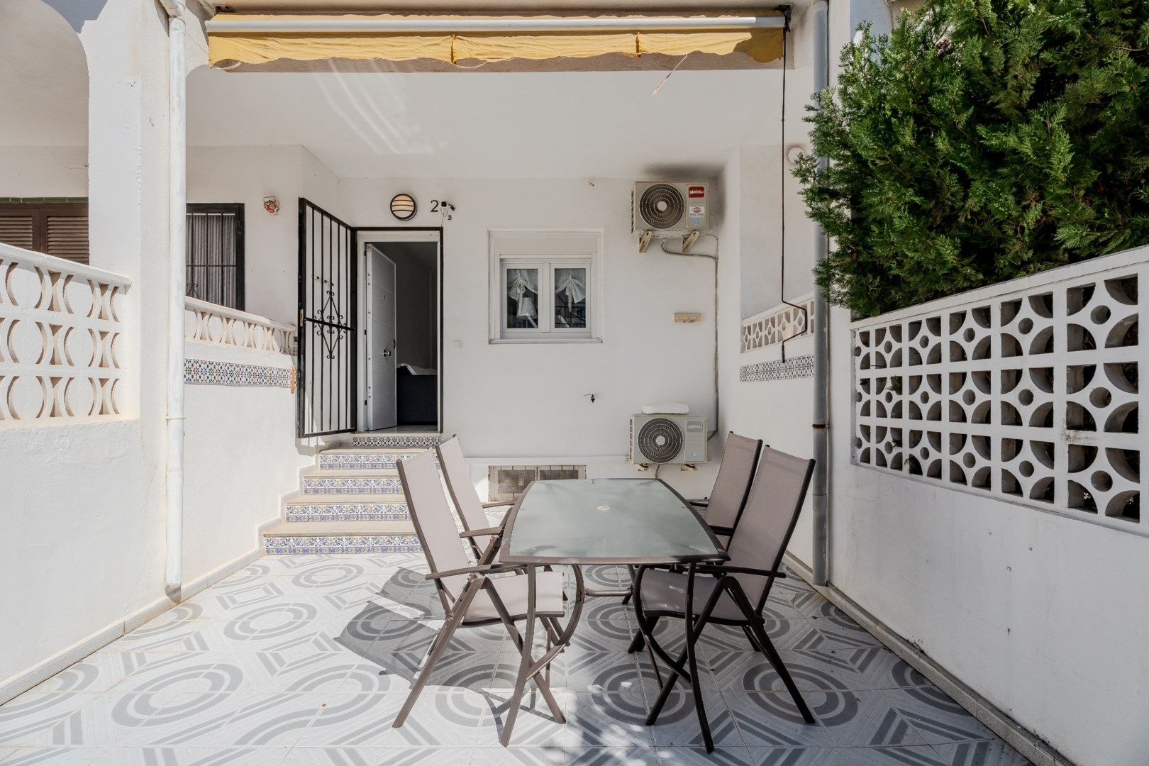 Välplanerad lägenhet i markplan med utmärkt läge i Torre La Mata. Bostaden erbjuder en rymlig terrass i söderläge som ger sol större delen av dagen, perfekt för avkoppling eller sociala stunder utomhus. På baksidan finns dessutom en privat uteplats med separat toalett, vilket ger extra komfort och