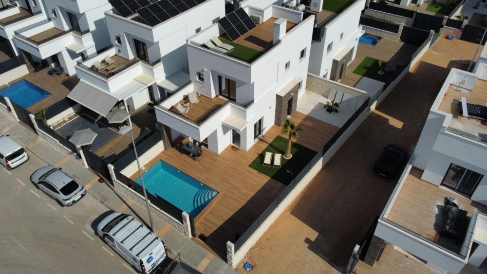 Nu presenterar vi denna exklusiva och moderna villa, belägen i det prestigefyllda bostadsområdet Vistabella Golf! Villan har en modern arkitektur med öppna planlösningar och generöst inflöde av naturligt ljus. Huset är fördelat på två våningar och rymmer tre rymliga sovrum samt tre badrum, alla