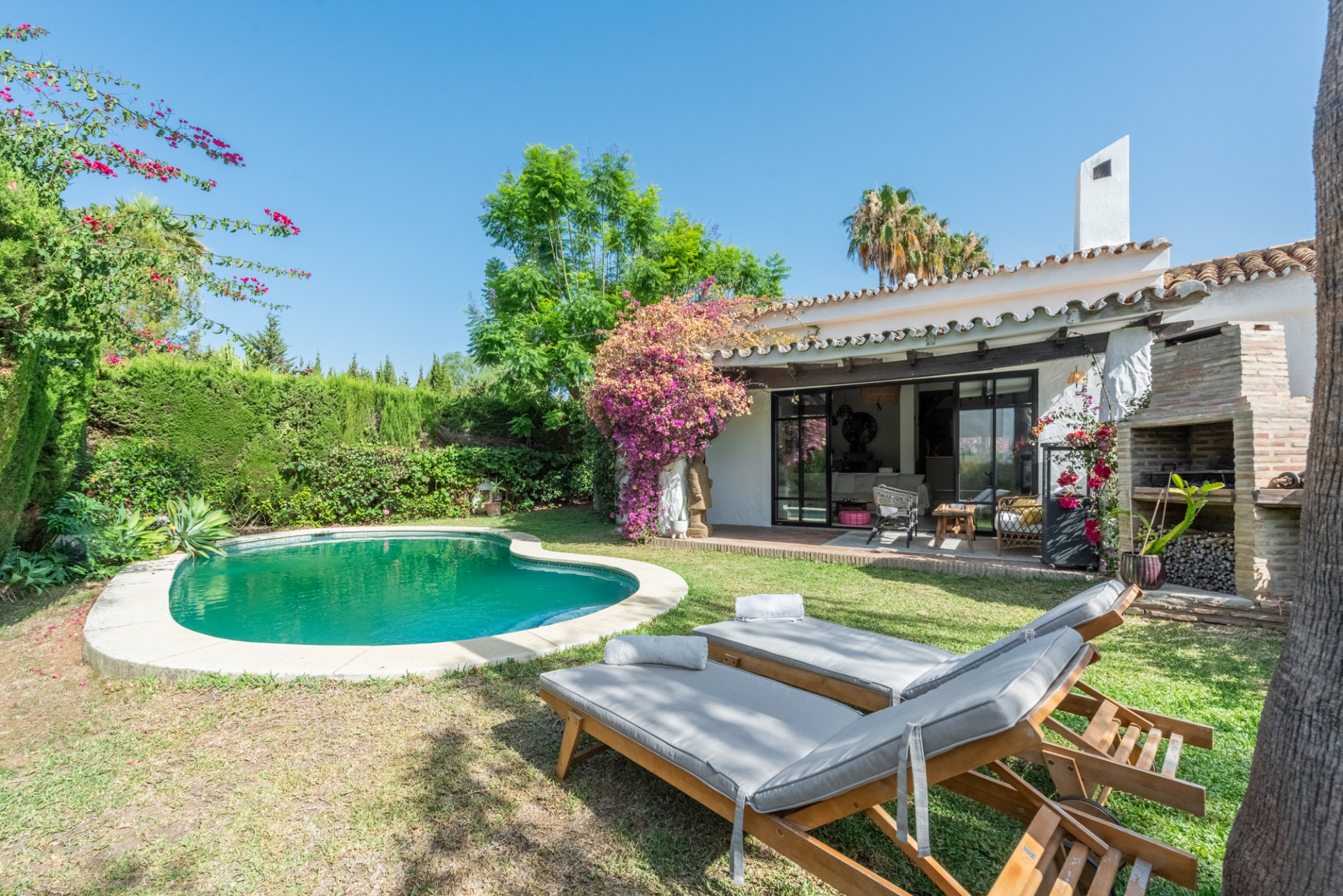 Upptäck denna charmiga villa i rustik stil, ett sant "lanthus" som kombinerar värme och komfort i varje hörn. Inbäddat i ett idylliskt läge mellan Monte Biarritz och Atalaya, är denna mysiga villa i två plan det perfekta hemmet för dem som söker en fridfull och förtrollande