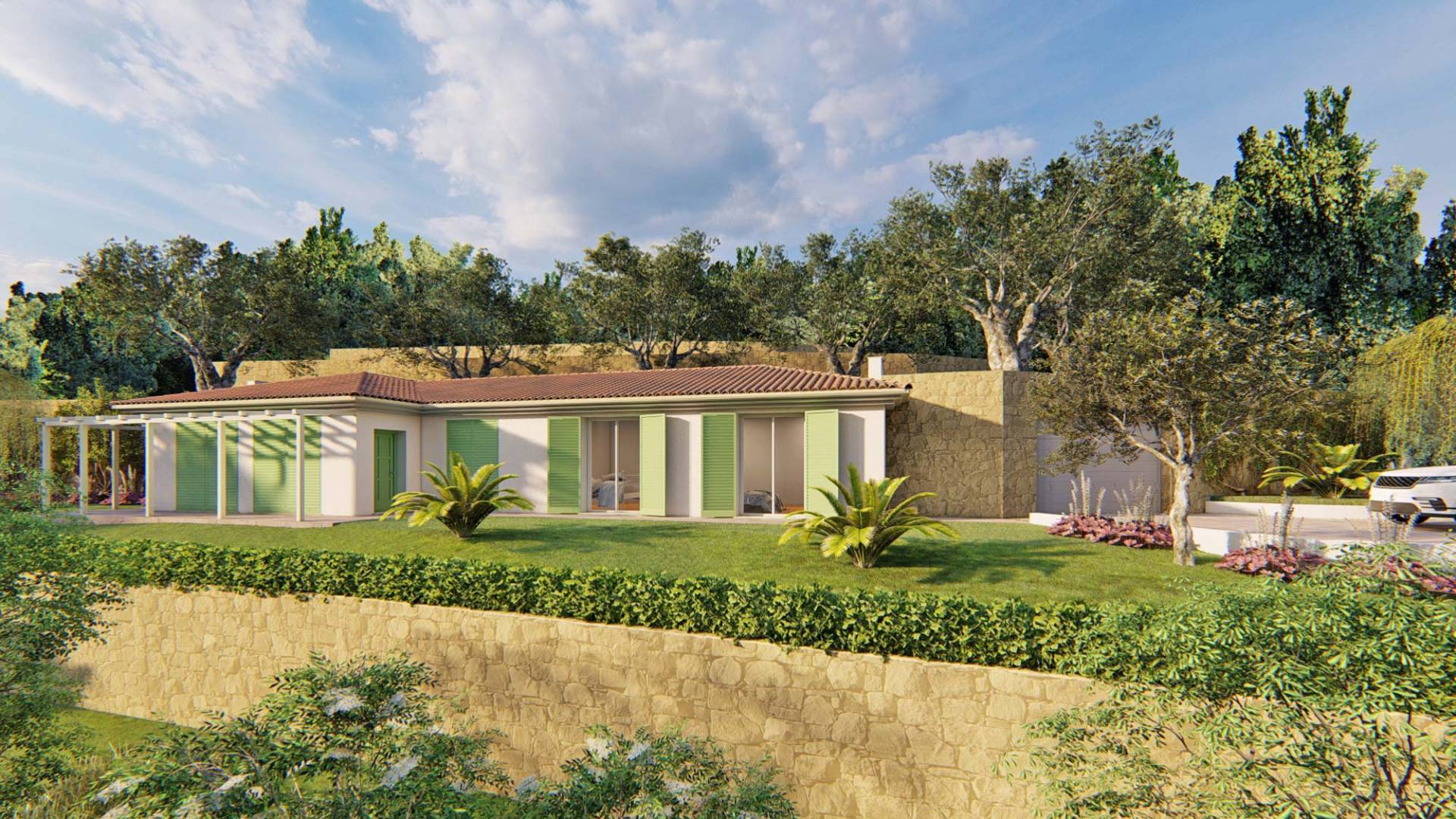 Elegant nybyggd villa till salu i Bordighera med panoramautsikt, bara några få minuter från Medelhavet. Denna helt nya villa, som för närvarande byggs, har en speciell möjlighet att anpassa interiören efter dina önskemål. Den enplansvillan, som ligger i ett lugnt sluttande område i Bordighera, är