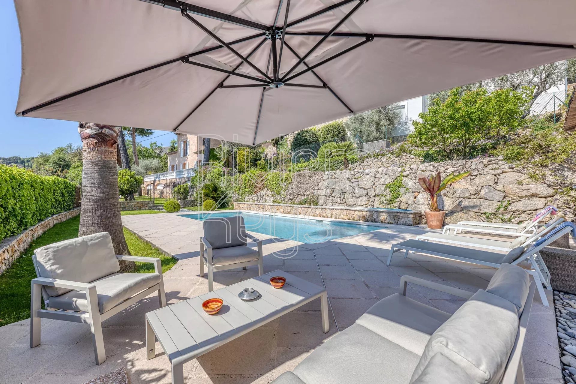 GATTIÈRES: Charmig villa med 4 sovrum, vacker trädgård, pool och fri utsikt Denna fantastiska villa ligger nära byn Gattières, cirka 17 km från centrala Nice, och har totalrenoverats med stor omsorg och elegans. Villan omges av en lummig trädgård på 1560 m² med cypresser, olivträd, citronträd,
