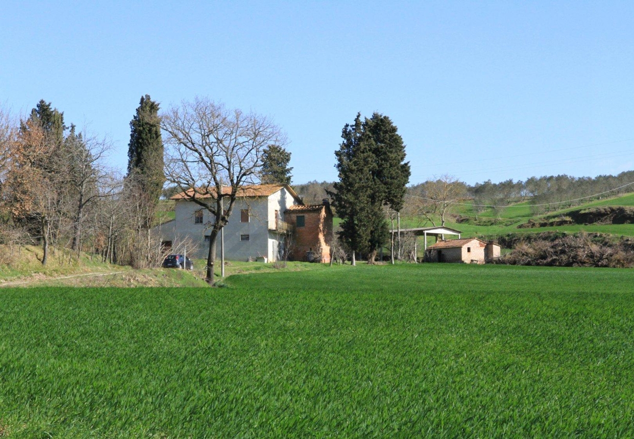 Rustikt lanthus i bra kondition för restaurering med 5 ha mark till salu utanför Cortona i provinsen Arezzo i Toscana. Kontakta oss för att köpa hus i Toscana. Vi har ett stort utbud av hus, tomter och lägenheter i Toscana. 5 rum varav 3 sovrum På tomten. Cortona är en mysig stad med cirka 22 000