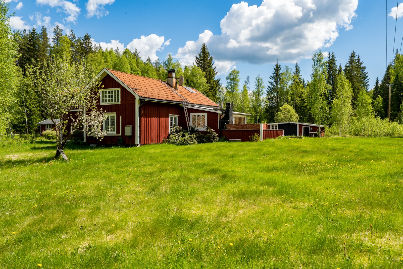 Fin fastighet mitt i naturen! Här är man för sig själv med ca 100 m till närmaste granne. Bostadshuset har en äldre del med timrad stomme och en tillbyggd del från 2002, här möts det gamla och det nyare på ett bra sätt. Fina sällskapsutrymmen och möjligt att dela av dessa för att få till fler