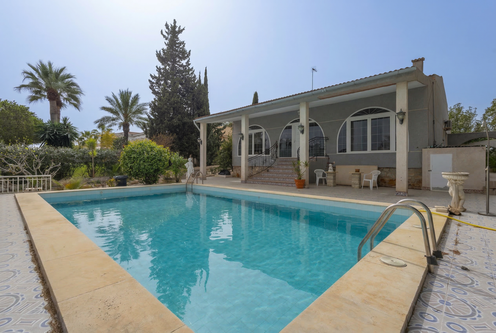 Varmt välkomna till denna fantastiskt fina och välskötta villa i Los Balcones! Villan erbjuder fyra sovrum, två badrum och en generös tomt om 1 200 kvm i ett soligt läge. Här erbjuds en stor privat pool (11 x 8 m), flera härliga uteplatser och en vacker trädgård som skapar en perfekt miljö för både