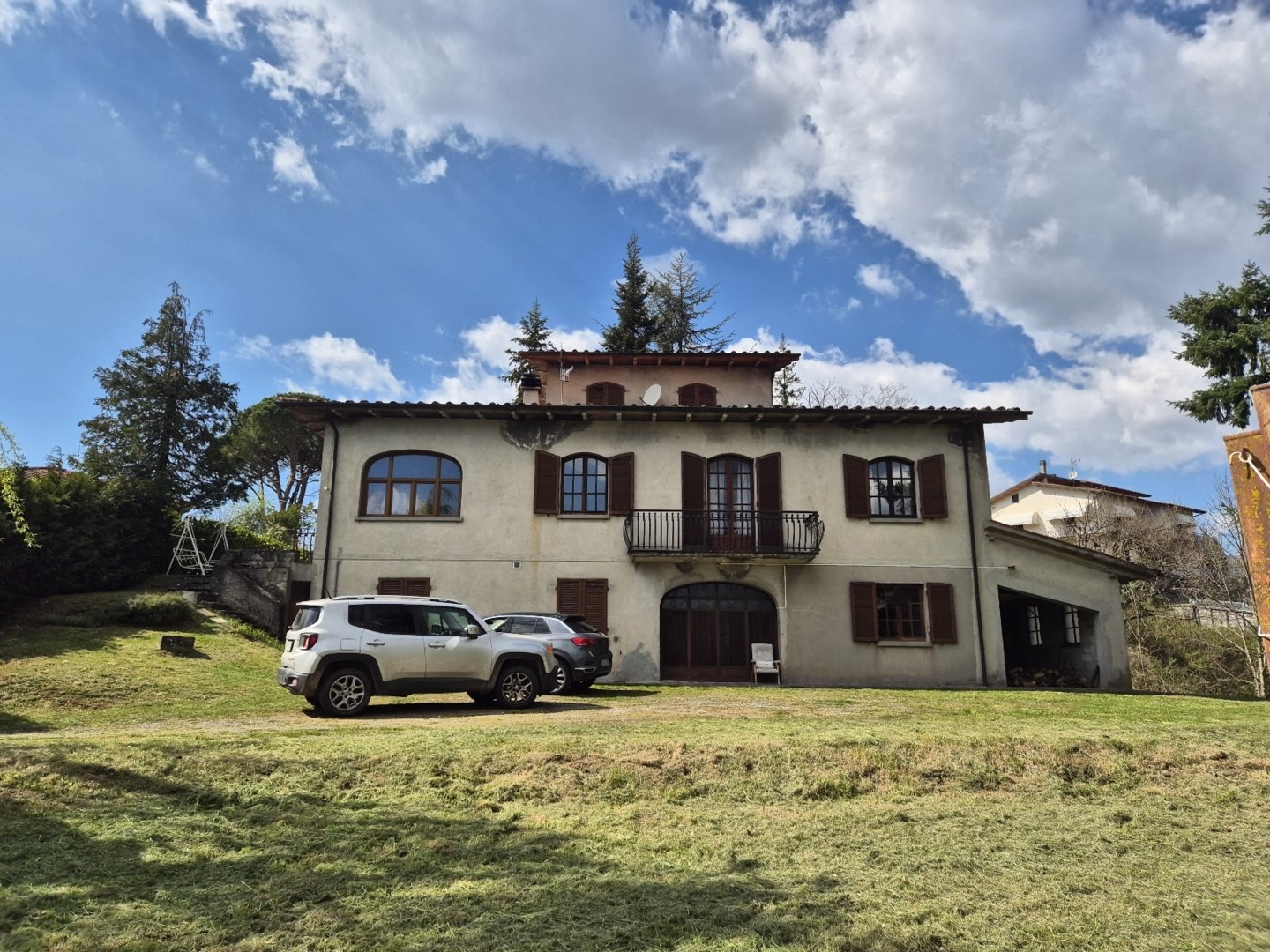 Vacker fristående villa med 4 000 m2 helt inhägnad trädgård till salu i Piazza al Serchio. Dubbel access, via en grind till parkeringsplatsen eller till fots direkt till huvudentrén. Villan ligger i utkanten av byn Piazza al Serchio, inom gångavstånd från barer och livsmedelsbutiker. Många