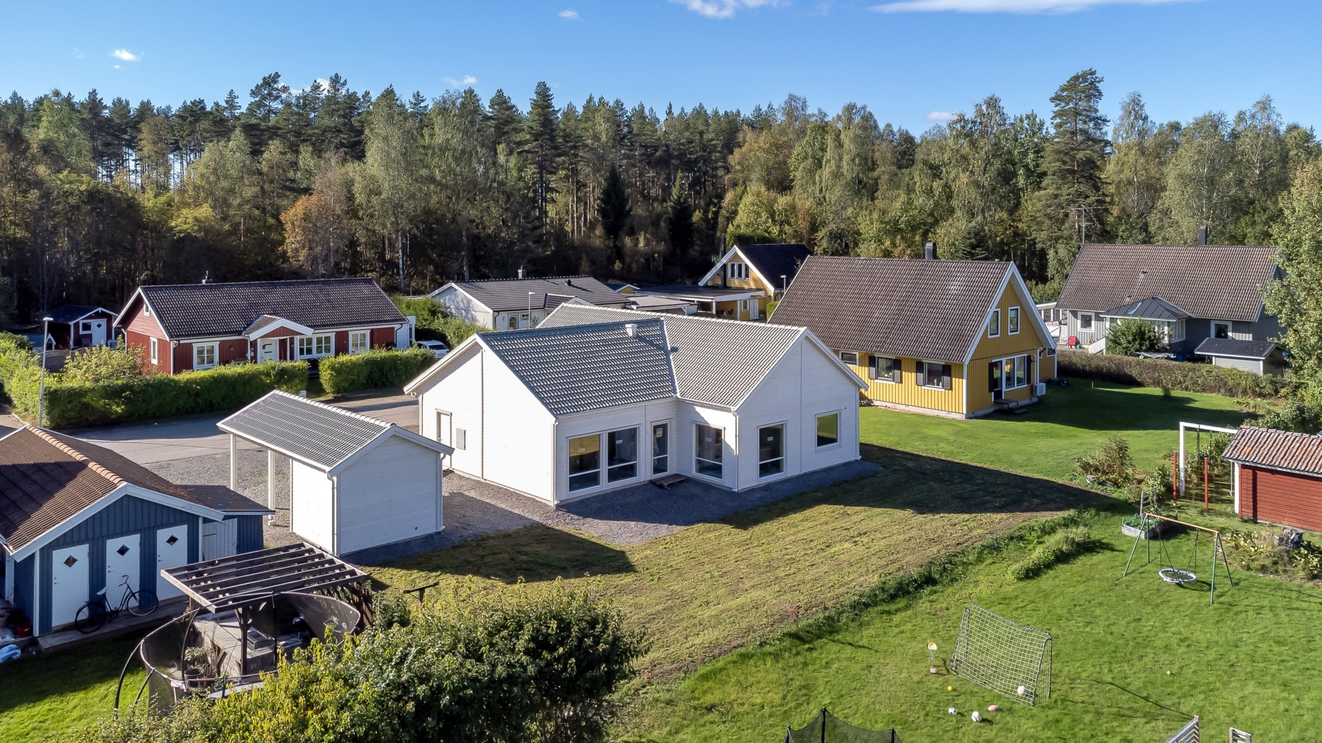 Välkommen till denna nyproducerade och stilrena 1-plansvilla från LB-Hus om 146,1 kvm, belägen på en generös tomt om 824 kvm. Här bor du i ett hem med genomgående hög standard – golvvärme i hela huset, modernt kök från Marbodal, helkaklade badrum med takdusch, och ett rymligt vardagsrum med