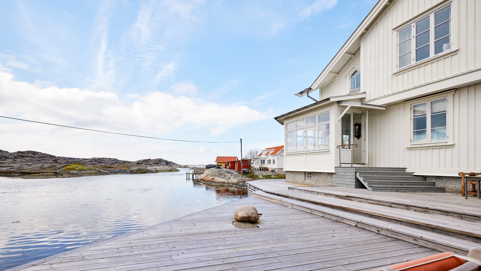 Mitt bland de vackra västkustklipporna och Björholmens härliga skärgårdsnatur ligger denna exklusiva villa som byggdes så sent som 2008 med stort altandäck och sjöbod. Vid sjöboden finns också två ordentliga altaner i etage som sträcker sig ut över vattnet. Hoppa ner i båten och det är inte långt