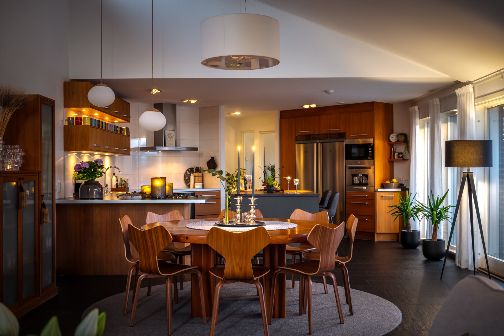 En villa som väcker sinnena Redan när du stiger in genom dörren slås du av den genomtänkta planlösningen och de stilrena detaljerna. De 4 sovrummen erbjuder gott om plats för hela familjen, och i de 2 badrummen, varav ett med bastu, kan du koppla av och njuta av lugnet. Från detta badrum leder en