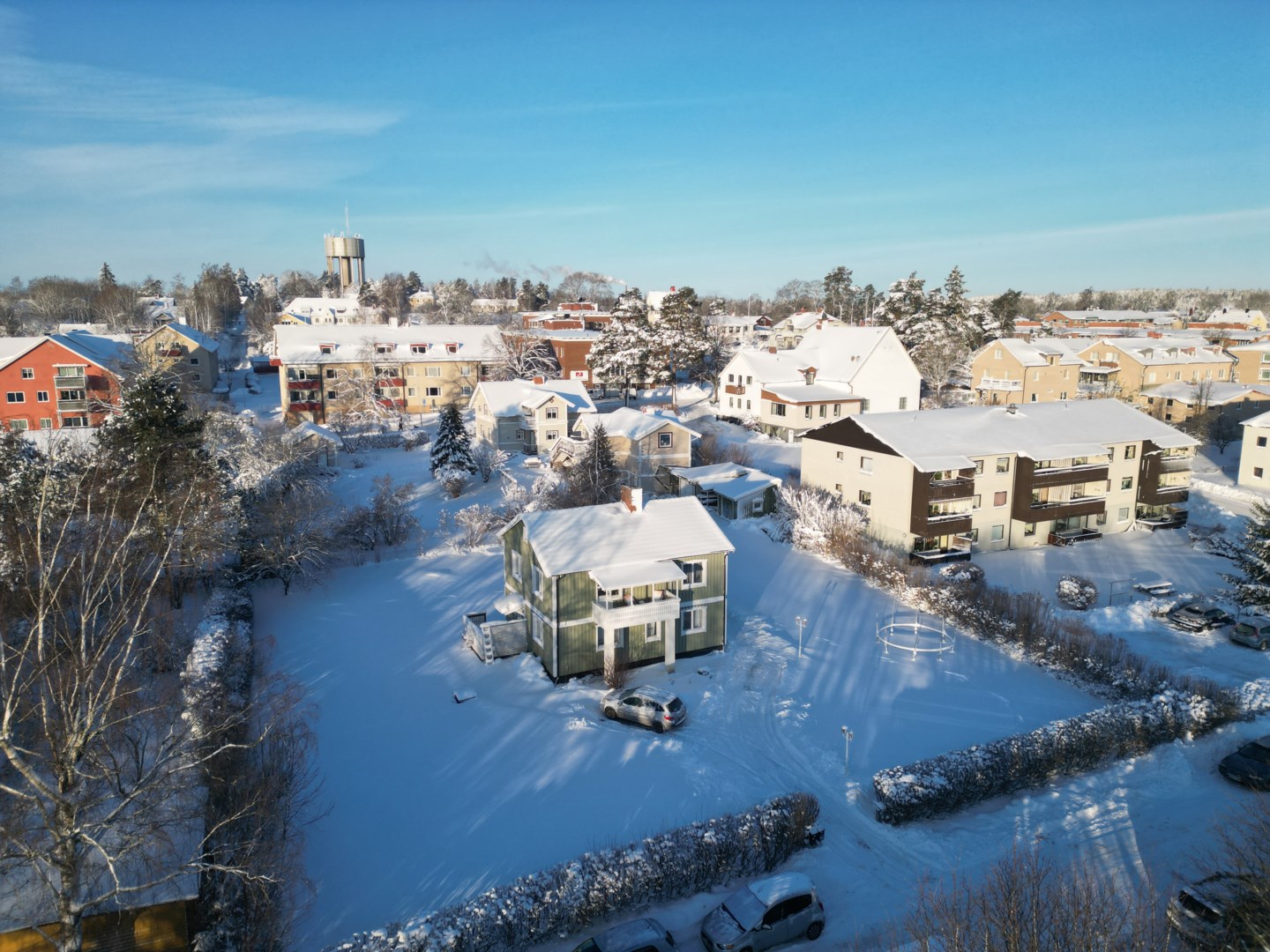 Lättskött 2-plansvilla till salu i centrala Rimbo. Idag fördelad på två lägenheter (fn uthyrda). Fiber indraget. Ny uteplats. Bra byggrätt 200 kvm på mark. Gångavstånd till bussar, skolor, butiker, gym m.m. Hyror: Nedre plan 2 rok hyra 8 000 kr. Denna lägenhet kan friställas till en köpare om så