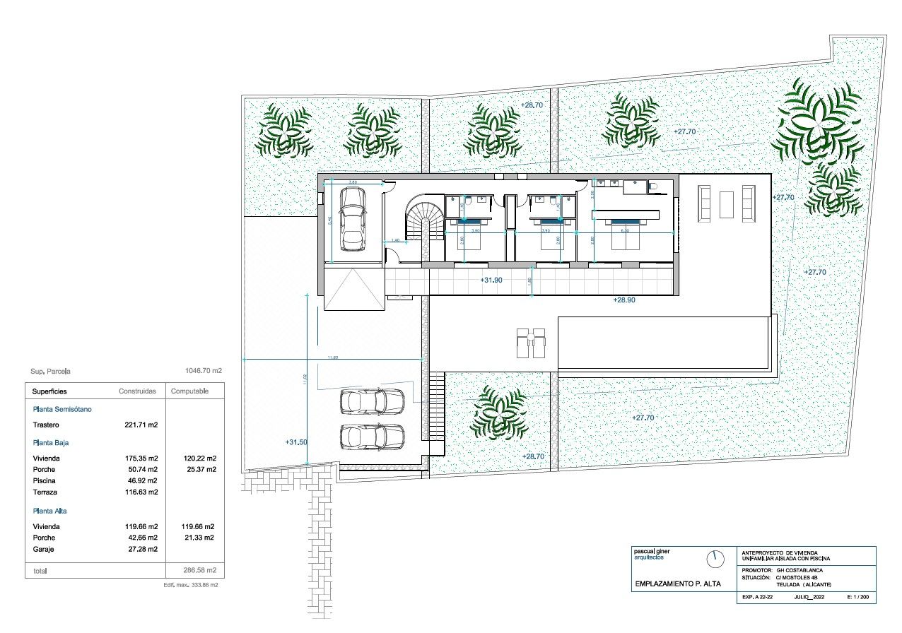 Modern villa att uppföra med pool och havsutsikt till salu i Moraira, på en tomt om 1 046 m2 med två fotgängare och fordonstillgångar, en i urbaniseringens gemensamma område. Villan ligger inom gångavstånd från de vackra stränderna och Morairas centrum. Svensk visning och hjälp med köpet på plats.