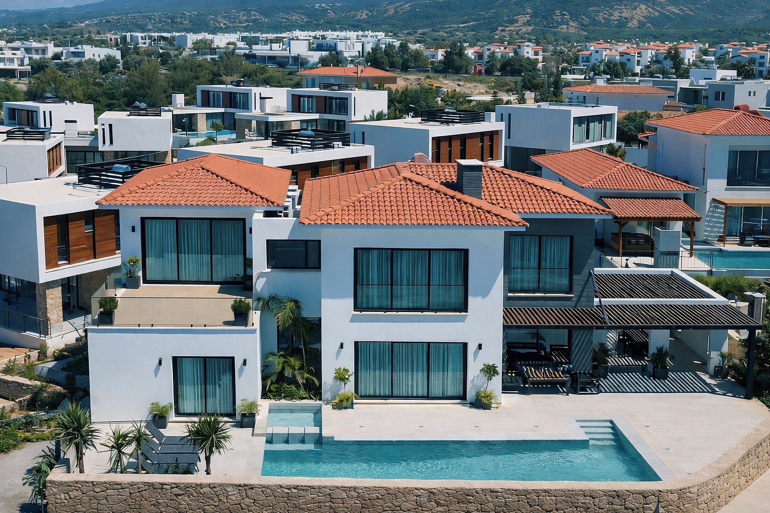 Fristående Villa med 5 Sovrum vid Havet i Esentepe Norra Cypern, med sina naturliga landskap, långa kustlinje och lugna livsstil, är ett av de mest framstående områdena i Östra Medelhavet. Girne, som ligger i norra delen av ön, utmärker sig som ett av regionens livligaste centra med sin