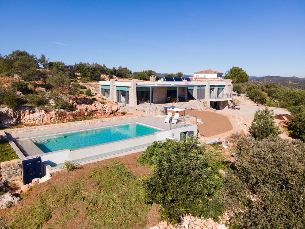 Underbar villa med pool till salu i Santa Catarina da Fonte do Bispo. Denna exceptionellt välkonstruerade moderna villa ligger på en höjd i söderläge med panoramautsikt över kusten. Hela huset vetter mot söder och har gott om stora härliga fönster för att maximera ljus och värme. Helt isolerad med