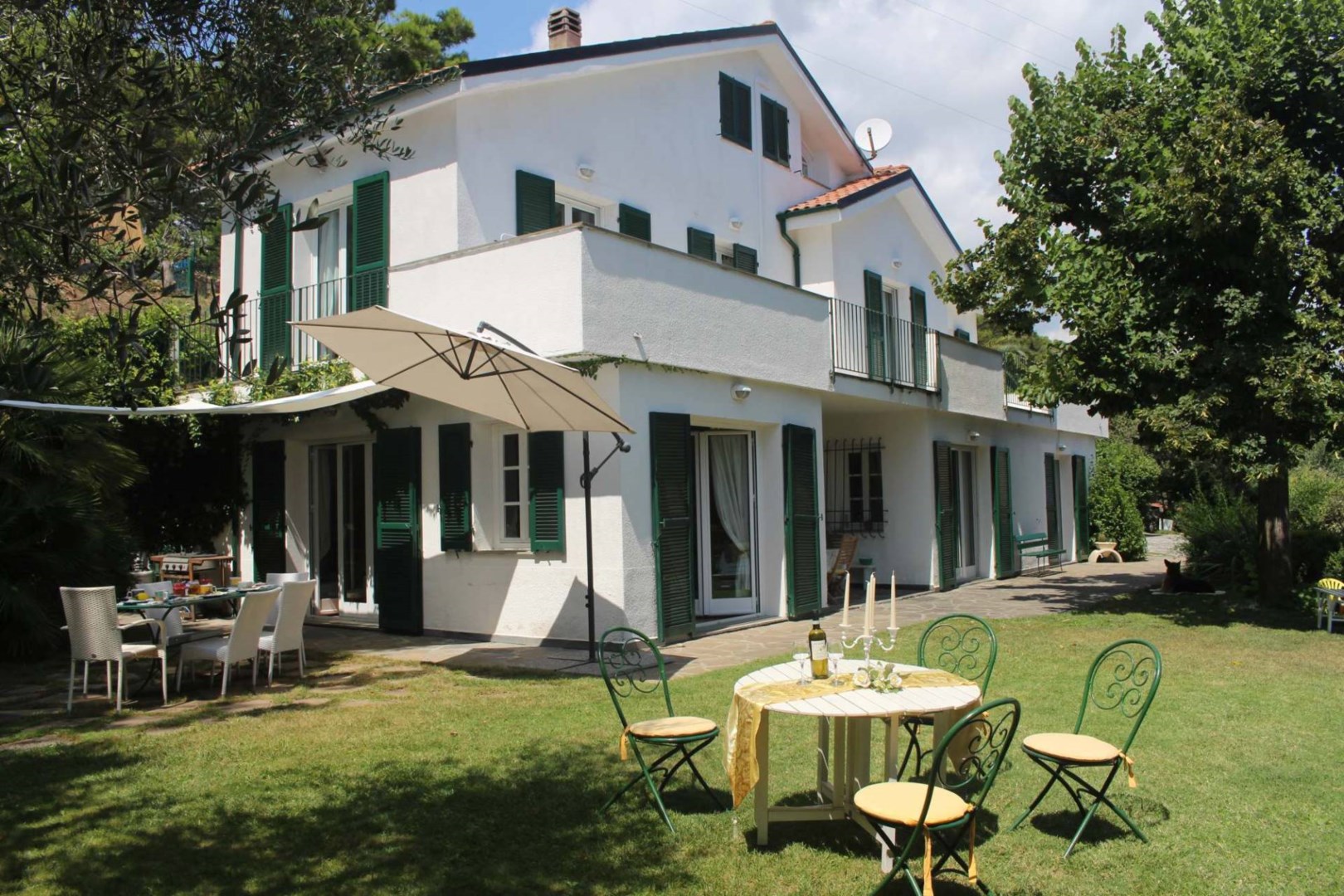 Villa med pool till salu i Imperia. Villan som är till salu i Imperia ligger i ett lugnt bostadsområde, omgivet av grönska och med en enastående havsutsikt. Villan ligger endast 3,5 km från Imperias centrum och stränderna, vilket erbjuder möjligheten att njuta av en oas av lugn och ro utan att ge