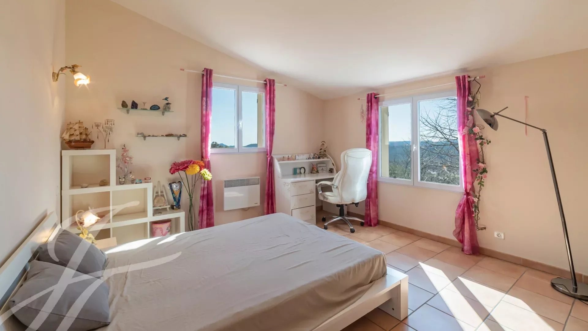 Montauroux - villa med panoramautsikt I ett bostadsområde, nära affärer och byn Montauroux, 210m2 villa belägen på 3600m2 tomt med pool och olivträd, med panoramautsikt över Canton de Fayence. På bottenvåningen erbjuder villan ett rymligt vardagsrum/matsal med öppen spis, ett öppet kök med