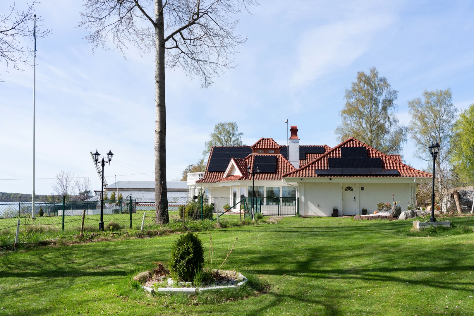 Sjötomt med ca 25 m strandlinje belägen vid Mälaren med pool och egen brygganläggning med separat bastu. Inrett gästhus i anslutning med utsikt över vattnet. Villan har en boa på 236 kvm och har energieffektiviserats med nya solpaneler på taket och luftvärmepump i vardagsrum och på övre plan och det