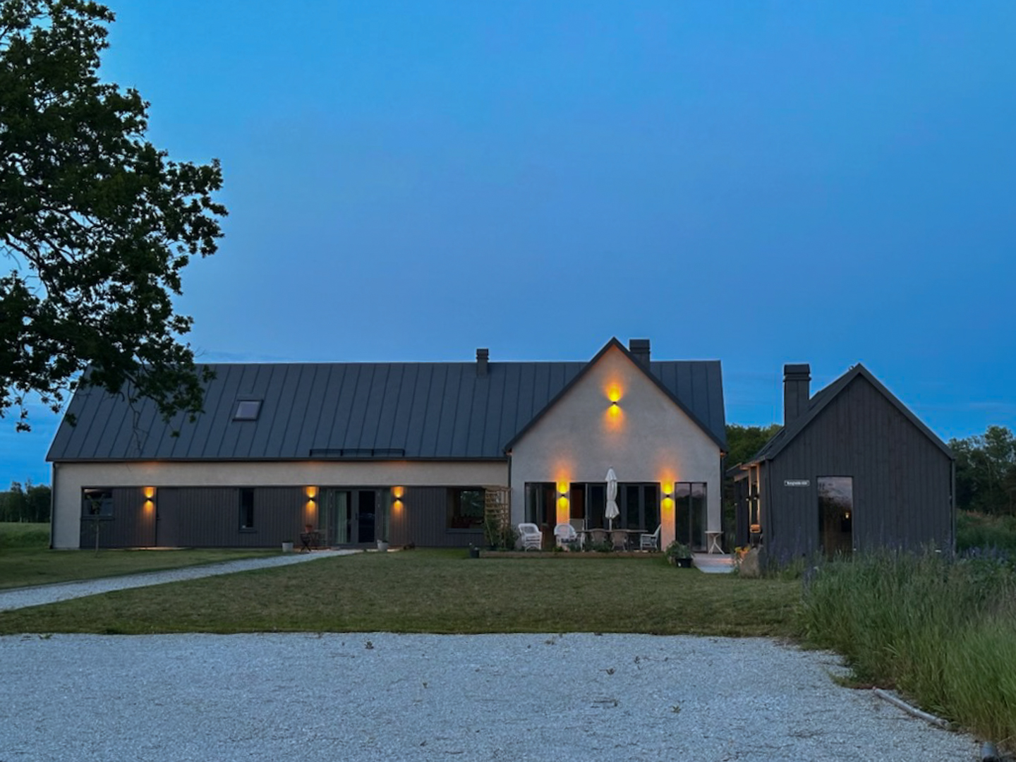 Stånga Rangvalds 650 Gotlandsgården, Stånga färdigställd 2024 NOMINERAD TILL ÅRETS ARKITEKTURPRIS PÅ GOTLAND 2025 ”Solen värmer den klarröda vallmon som vajar i vinden. Blåeld blommar och står stolt och rak i ryggen invid infarten till den trevliga gårdsbilden. Ett vårdträd – en gigantisk