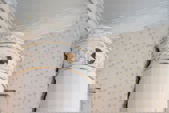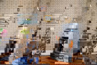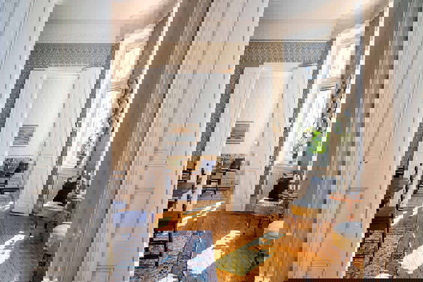 – Det finns ett fint lugn i lägenheten som man märker när man är på plats. Man drömmer sig bort och vill bara krypa upp i soffan framför elden i någon av kakelugnarna med en kopp te och en go bok i handen, säger Josefine med ett skratt.