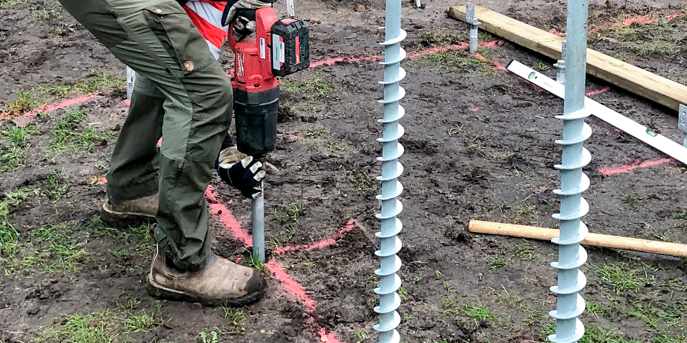 –Vi har också betydligt större skruvar, för tyngre byggnader. Då drivs skruvarna ned med grävmaskin med specialredskap, men även då finns många fördelar jämfört med betongplintar, avslutar Stephanie Rödskov.