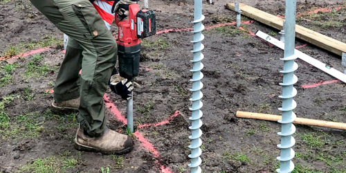 De mindre markskruvarna, för gör-det-själv-bruk, kan drivas ner i de flesta marktyper med en vanlig mutterdragare. Men de största skruvarna kräver mutterdragere med kraftigare vridmoment.