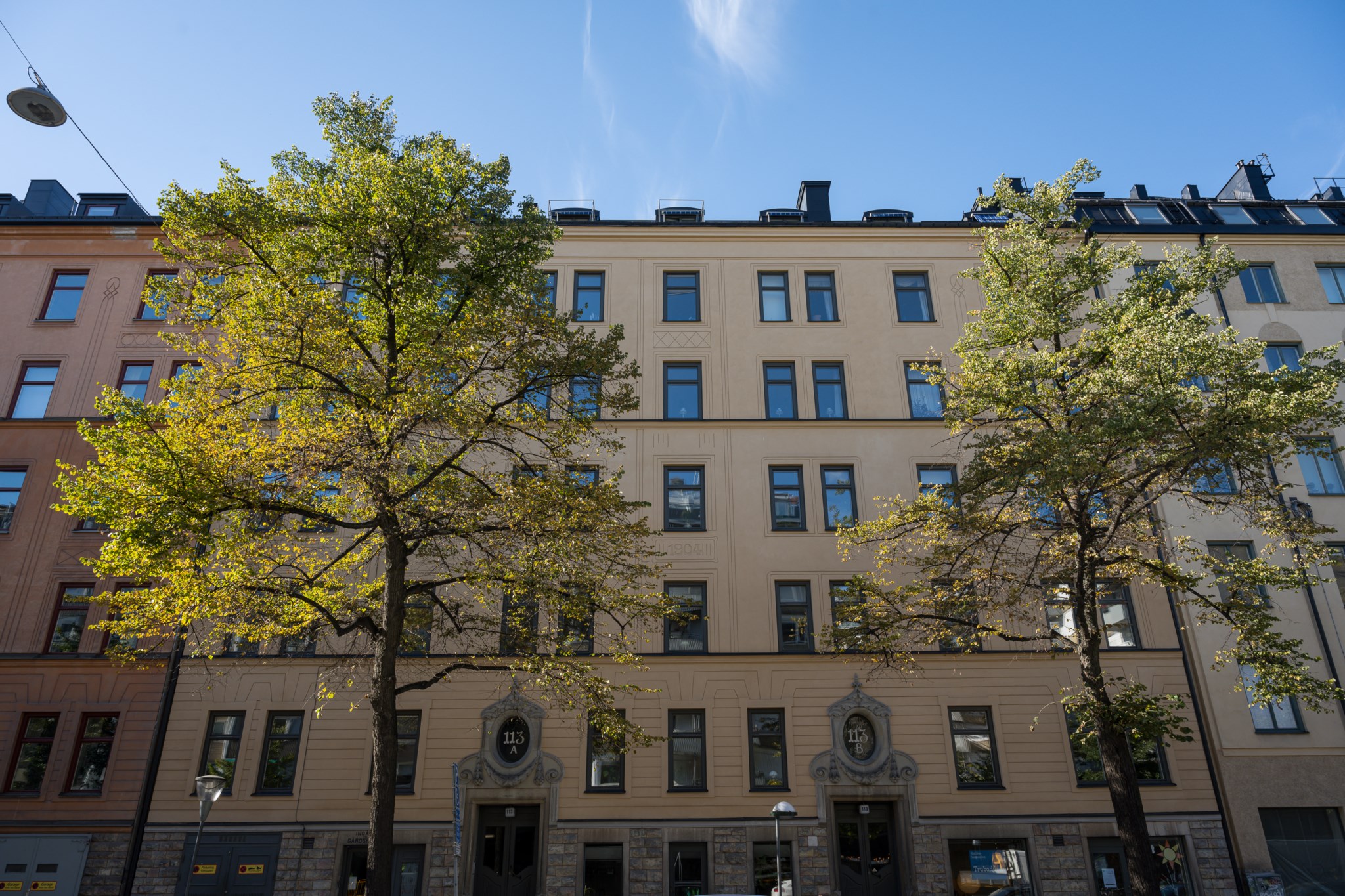 Planlösningen är både rund och genomtänkt - från gatan till den lugna gården. Den är moderniserad och mycket väl anpassad för både villaägare och familjer med barn. Här finns dessutom härliga och luftiga sällskapsytor med ett stilrent och platsbyggt kök, samt intilliggande vardagsrum. De stora fönstersektioner ger fria och frodiga vyer ut över Stockholms charmiga gator i Vasastan.