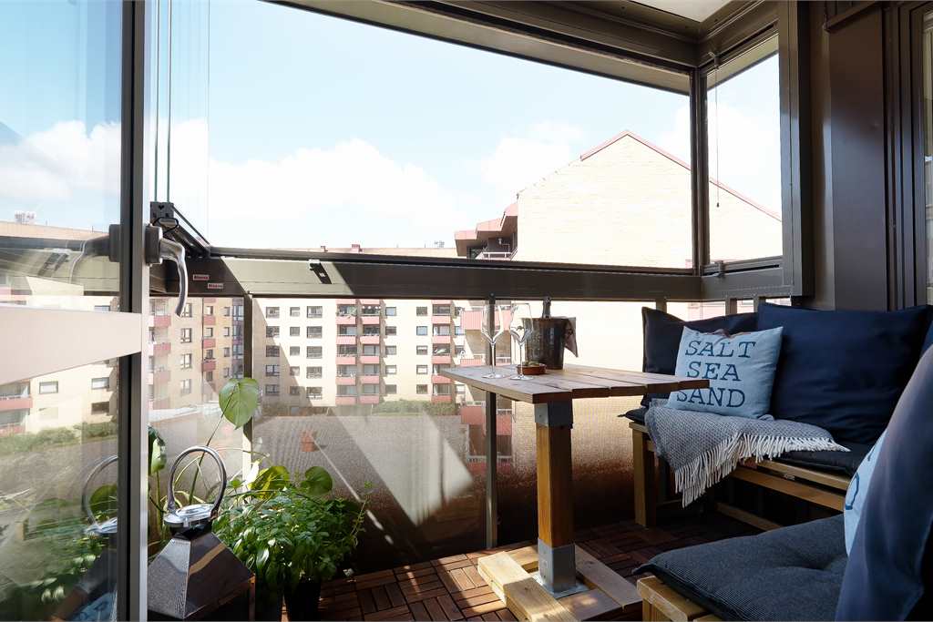 – Lägenheten är verkligen till för compact living. Men den känns också luftig och fräsch då den ligger högt upp och man har både eftermiddags- och kvällssol. För att vara en liten trea finns det extremt mycket förvaring, säger Leif.