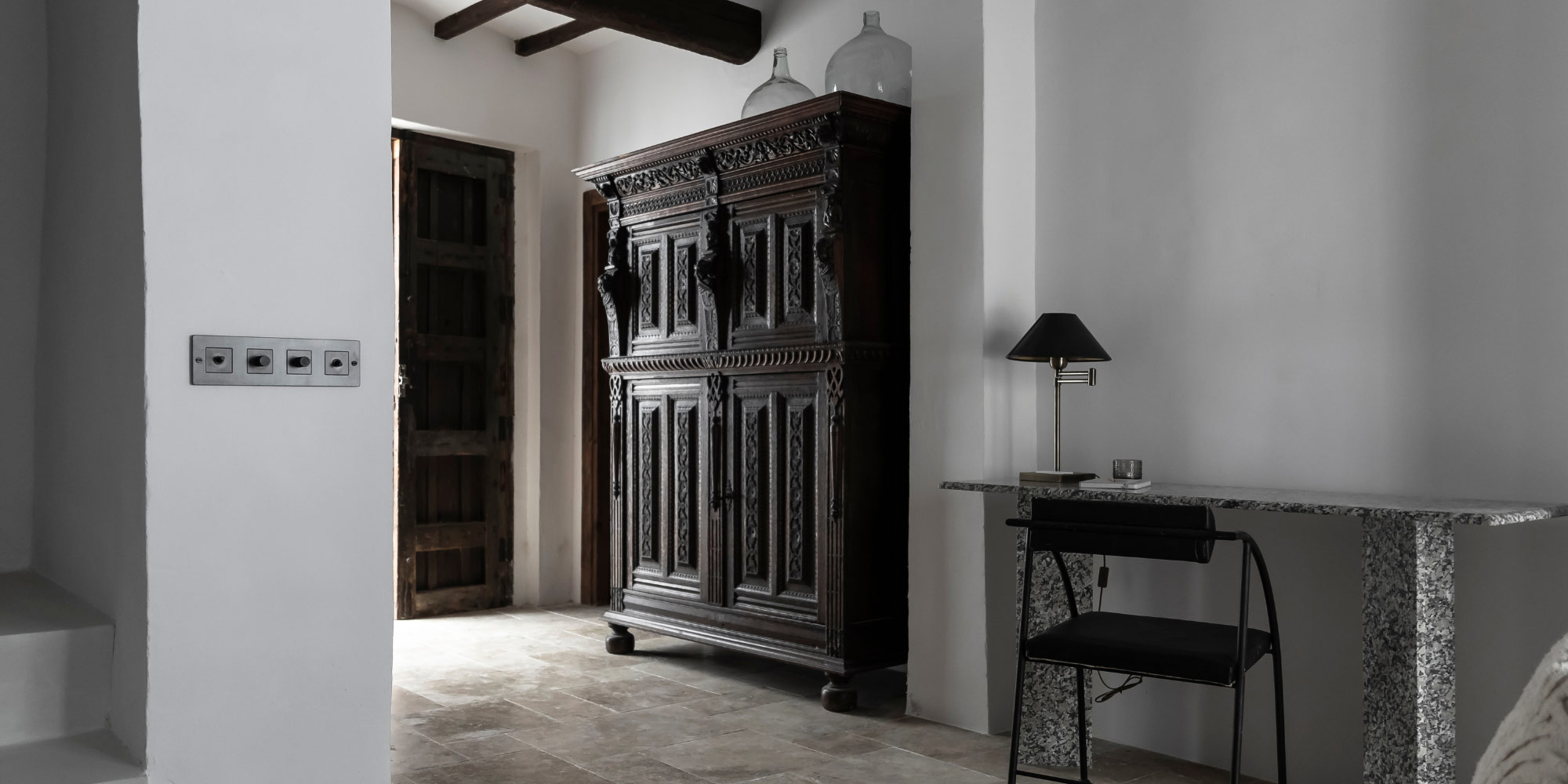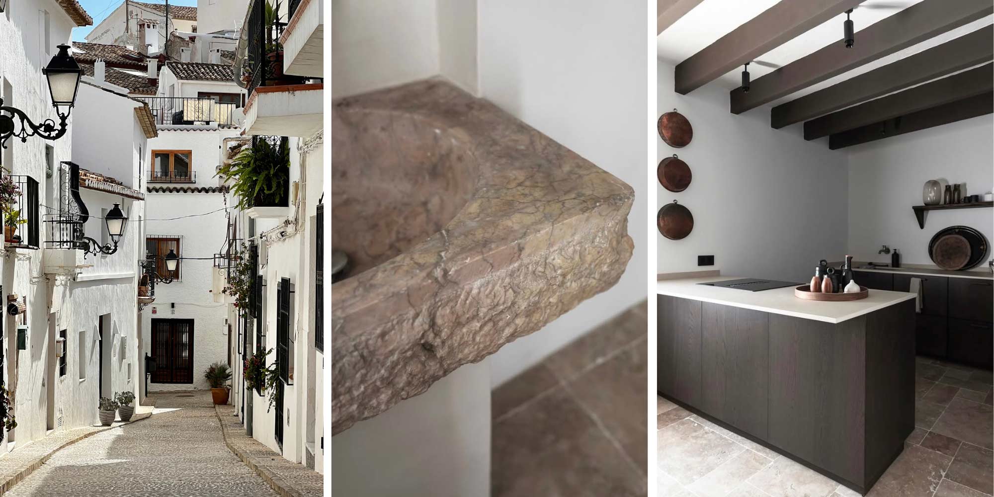 Therese arbetar inte själv med den spanska stilen i dess helhet men låter dess influenser smyga in i sina projekt. I sitt 400 år gamla hus i Altea har hon kombinerat nordisk enkelhet med spansk charm. Här samsas putsade väggar, synliga träbalkar och terrakottagolv med modern bekvämlighet som travertinmarmor och minimalistiska möbler.