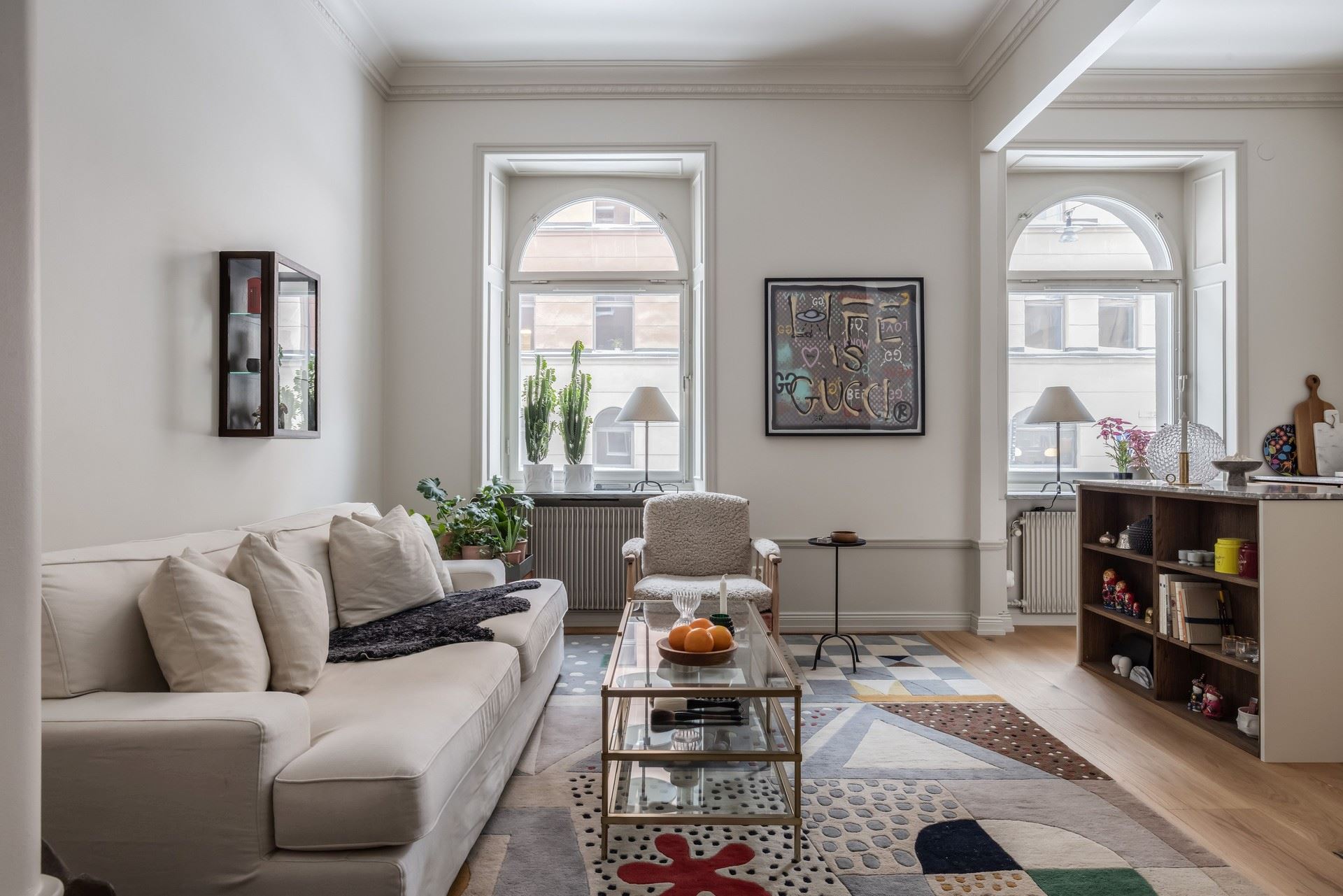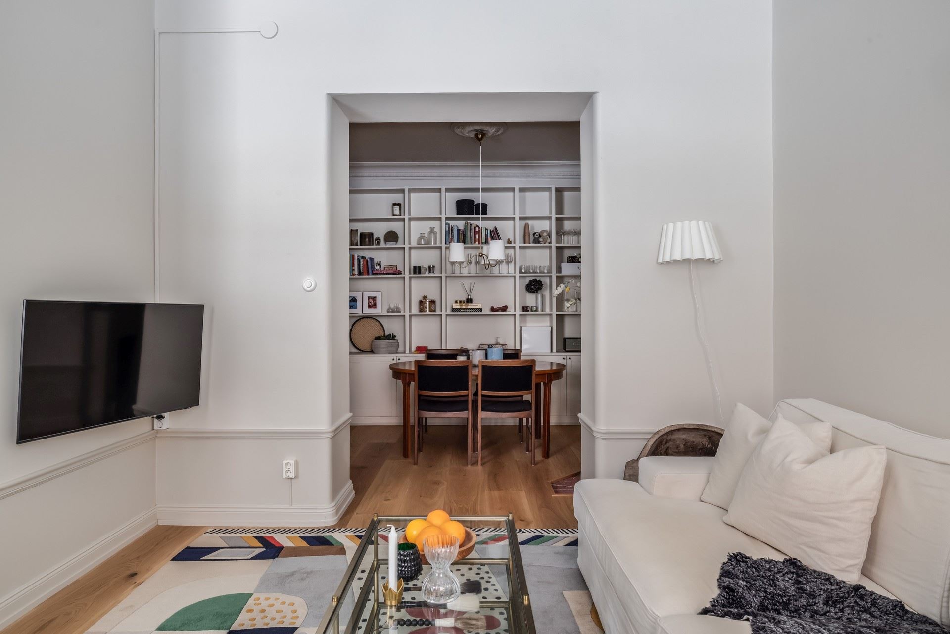 Det är inte bara lägenhetens oemotståndliga fräschhet och elegans som lockar intressenter, utan också säljarens unika prägel på interiören. Varje rum är smakfullt inredd med en stilren och modern design som samspelar väl med lägenhetens historiska karaktär.