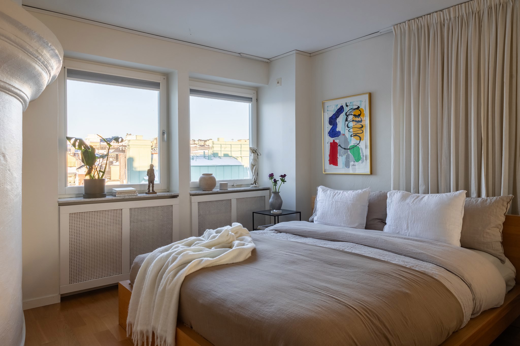På Norr Mälarstrand 22 kommer brist på sovrum aldrig att vara ett dilemma. För denna magnifika takvåning erbjuder fem till sex sovrum, där ett "master bedroom" samt fyra utmärkta barn-, gäst- eller arbetsrum ingår. Sovrummen är väl tilltagna och erbjuder en lugn och rofylld sömnupplevelse utan störande trafik. Det finns även två badrum, varav det ena är utrustat med både badkar och dusch, medan det andra erbjuder en bastu och en dusch. Dessutom finns det en gästtoalett och en egen tvättstuga med tvättmaskin och torktumlare för extra bekvämlighet.