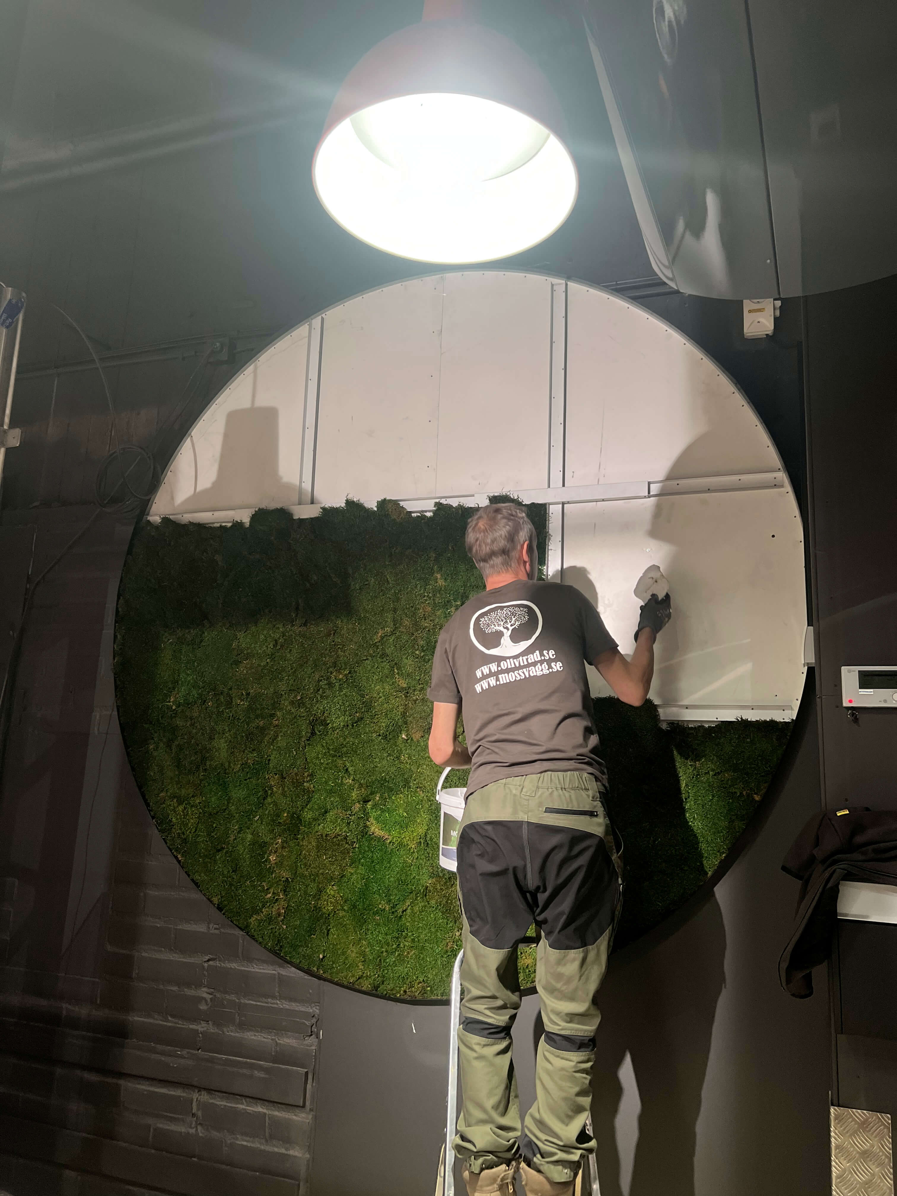 - Du behöver inte göra någonting, inte vattna, ingenting. Det enda mossan inte tål är direkt solljus. Några timmar går bra men annars kan den ta skada. Vi lämnar fem års garanti på våra tavlor, men den bör hålla längre än så, berättar Fredrik.