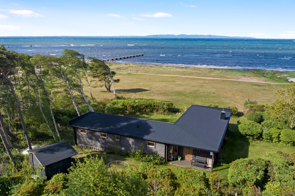 Med ett vardagsrum, kök, badrum med bastu, tre sovrum – alla med havsutsikt – samt en friggebod på tio kvadratmeter, finns det gott om plats för hela familjen. Nedanför fastigheten finns en barnvänlig sandstrand med flera badbryggor, och i området finns även två tennisbanor. Dessutom finns det grönsaksstånd runt hörnet där du kan köpa färska primörer från trakten.
