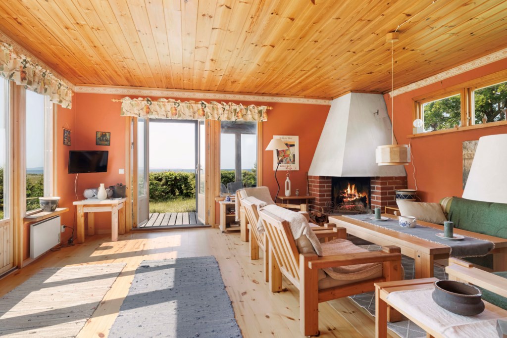 Det klassiska svenska semesterhuset på Bofinksvägen 2 är beläget på första parkett. Den öppna planlösningen mellan vardagsrum och kök skapar en ljus och luftig atmosfär, och de stora fönstren ger en fantastisk utsikt över havet. Köket är välutrustat med allt du behöver för att laga goda sommarmåltider. Badrummet har en integrerad bastu där du kan koppla av efter en dag på stranden.