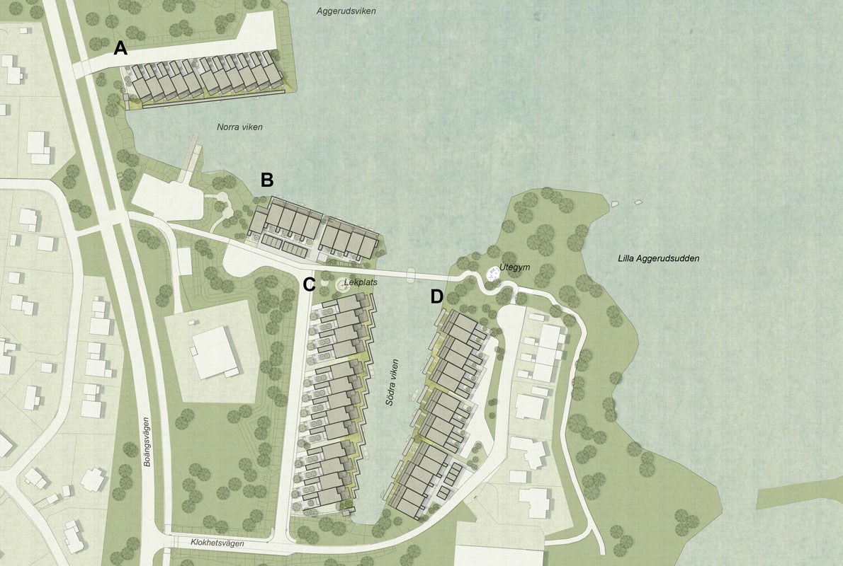 På Aggerudsvikarna i Karlskoga håller det på att byggas hus för fullt. Mitt i centrum kommer de första bostäderna stå klart våren 2024 nästan femtio bostadsrättsradhus med strandtomter intill Boängsvägen vid sjön Möckeln. Med husen belägna precis vid vattnet, likt de i Venedig, erbjuder detta produktionsprojekt en fridfull tillvaro och chansen till en unik livsstil.