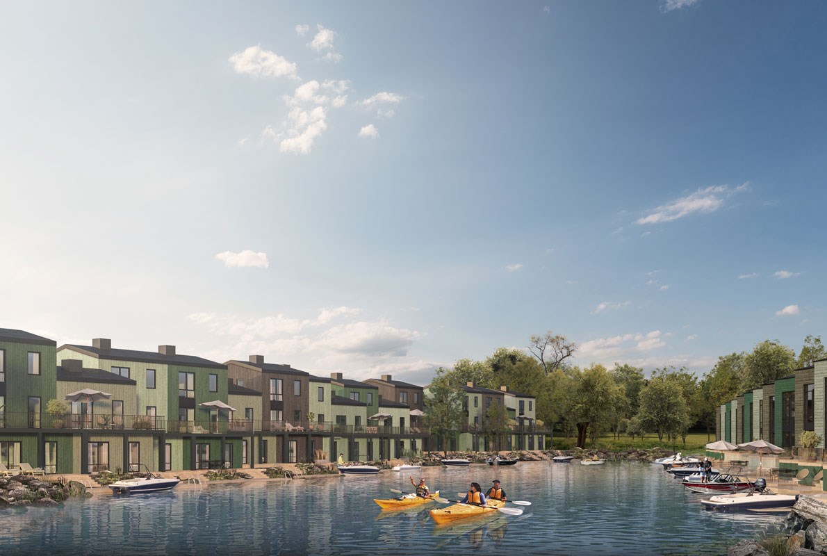 Projektet initierades av kommunen för nästan 15 år sedan, med konstgjorda vikar utgrävda ur sjön. Men det är först nu som det byggs för fullt.