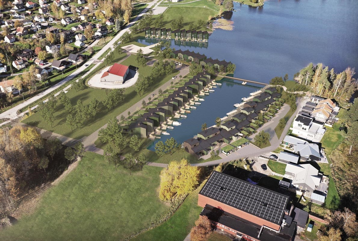 – Du har tillgång till din egna brygga precis utanför vardagsrummet vilket är väldigt unikt och något helt nytt för Karlskoga, säger Albin Andersson.