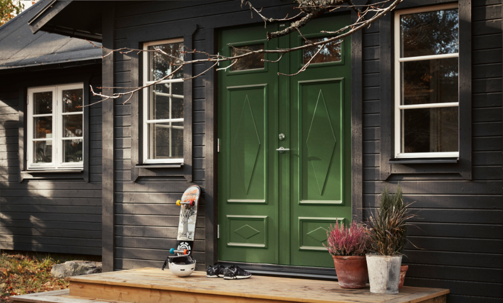 – En harmonisk fasad uppnås när alla ytterdörrar ser ut att höra ihop som syskon. Det är därför det rekommenderas att man väljer en dörr från en serie som även erbjuder de andra dörrarna i samma stil och färg. Många husägare uppskattar att våra dörrar är designade som "familjer" med möjlighet till pardörrar, garage-, altan- och förrådsdörrar som kan ha glas eller inte. När man bygger nytt passar det att välja alla dörrar samtidigt. Även om man endast ska byta ut entrédörren på ett äldre hus är det bra att kolla upp om det finns några syskondörrar som kan behöva bytas ut om några år.